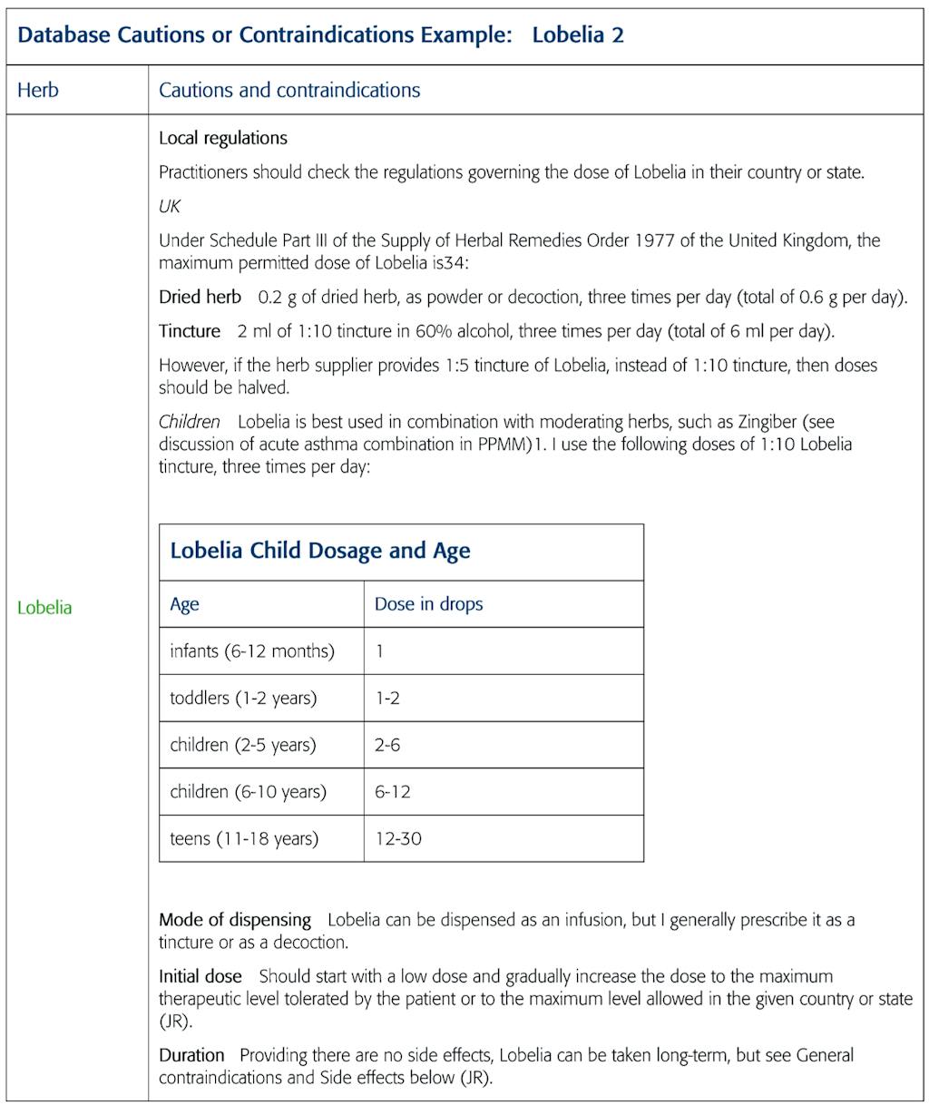 When taken as a dried herb, the maximum recommended daily dose for Lobelia is 0.6 g, rather than 3 g, as with most other medicinal plants.